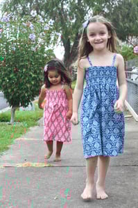 Beautiful pink and blue shirred (which just means the elastic gathering at the top!) dresses. Perfect for warm summer days or layering with a shirt and tights in cooler months. Lovely easy fit means they are ideal for wearing as a tunic top as little girls grow.